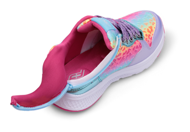 If you want your shoes to stand out, then this is the style for you! Our Excursion in Candy Leopard features multi-coloured leopard print, purple m...